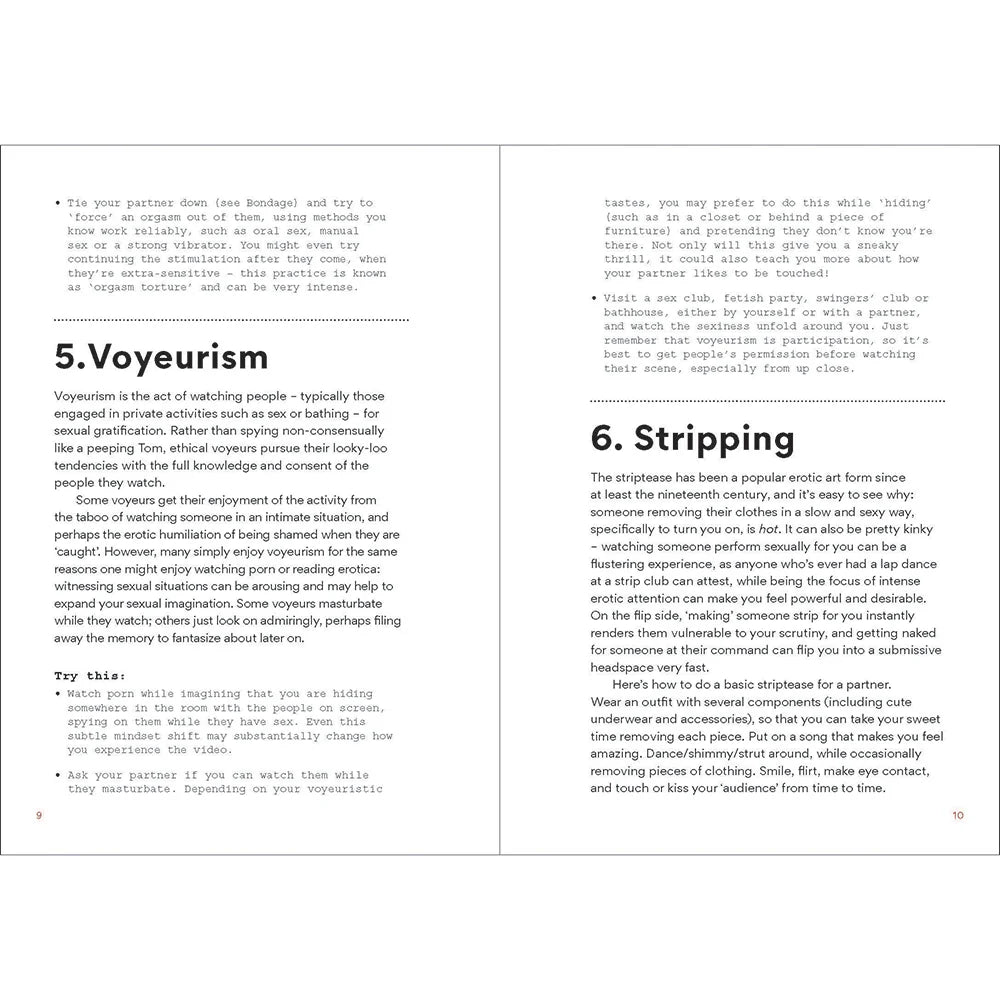 Everything you wanted to know about kinky practices is covered in this highly entertaining and readable book. Known for her bold, witty prose on all matters related to the bedroom, Kate Sloan makes this an accessible subject for anyone curious about new ways to spice up their sex lives. Whether you are looking for ideas, clarification, or just an enjoyable read, there is plenty here to keep you intrigued. The text is accompanied by helpful tips and illustrations.