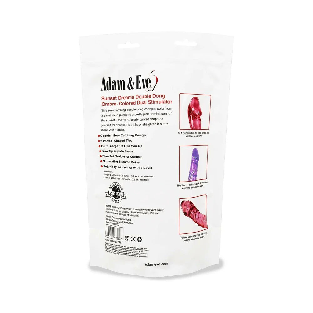 Looking for the perfect toy to share with your partner? You've found it! This double ended dong has been designed by the experts here at Adam & Eve specifically with couples in mind. This toy has 1 long shaft and 2 phallic heads, great for G-Spot or P-Spot play. Choose who will get the larger and slimmer side, then straighten out the flexible shaft. Feel the lifelike veins massage you and watch as your partner experiences the same blissful sensation. You can even allow your toy to follow its natural curve and keep both ends for yourself. Your partner will love watching you lose yourself in the double stuffed fun. Waterproof. Large side measures 6 x 1.75 inches insertable. Small side measures 5.5 x 1 inches insertable. Made of TPE.